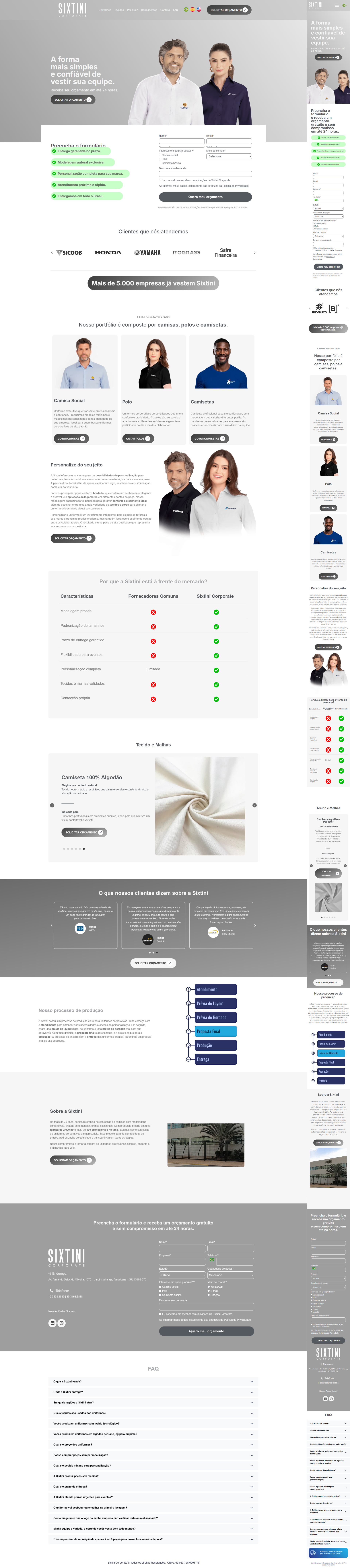 A Sixtini é referência em soluções de uniformização empresarial de alto padrão. O desenvolvimento desta landing page estratégica visou otimizar o funil de vendas B2B, utilizando uma arquitetura de conversão que destaca a robustez produtiva da marca e facilita a captação de leads qualificados em larga escala.