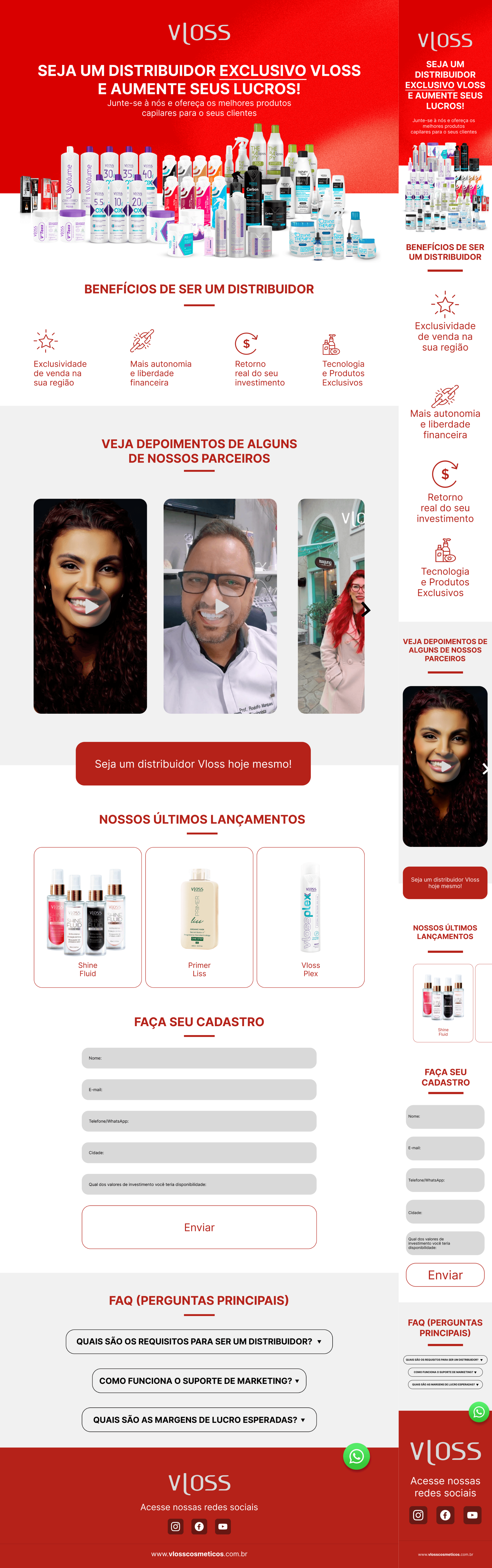 A Vloss é um empresa localizada no interior de São Paulo, e busca sempre aumentar seu mercado, atuando em todo o Brasil. Nosso objetivo foi desenvolver uma landing page para facilitar a entrada de novos revendedores dos produtos Vloss.